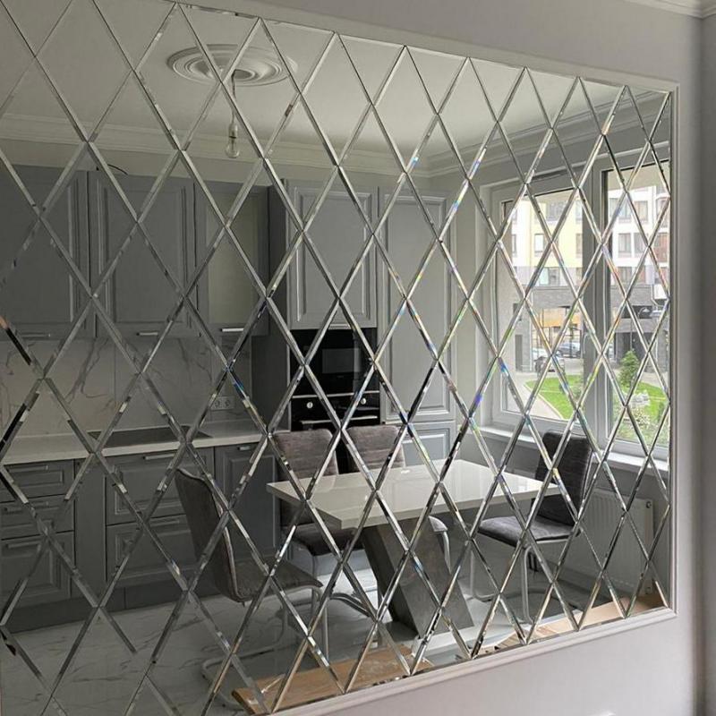 Использована зеркальная квадратная и треугольная плитка с фацетом.
